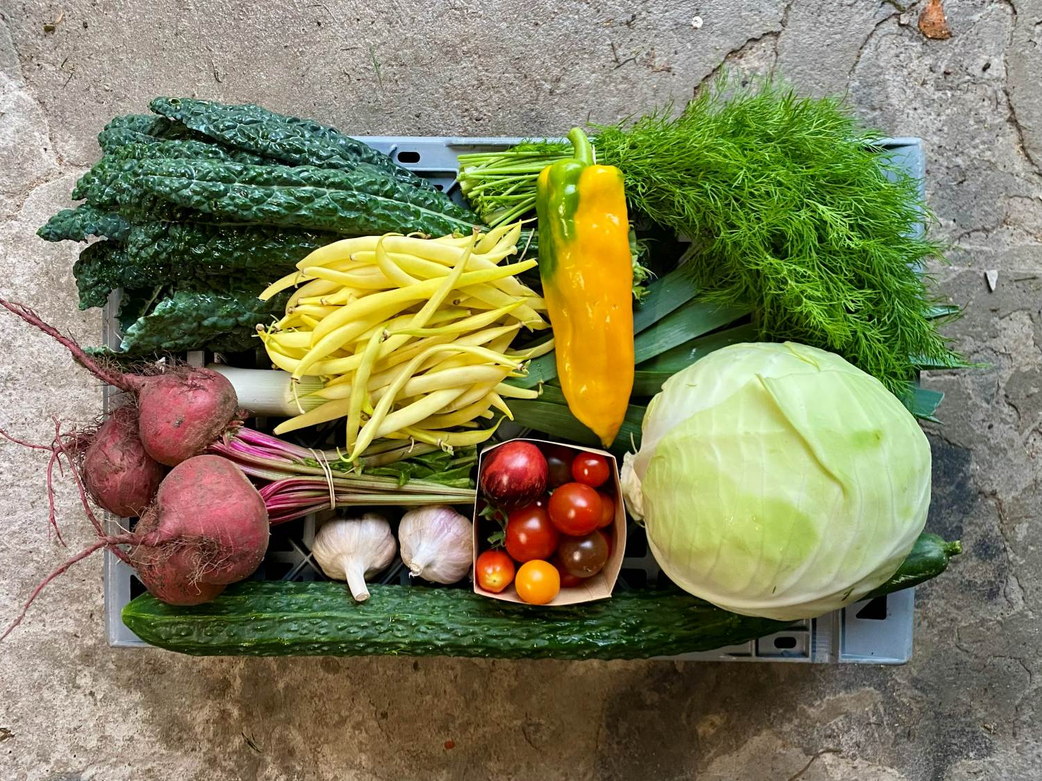 Varje vecka under säsongen får du en kasse fylld med nyskördade grönsaker. Innehåll och mängd varierar beroende på vad som är skördeklart – du får alltid de bästa grönsakerna i säsong, direkt från odlingen.